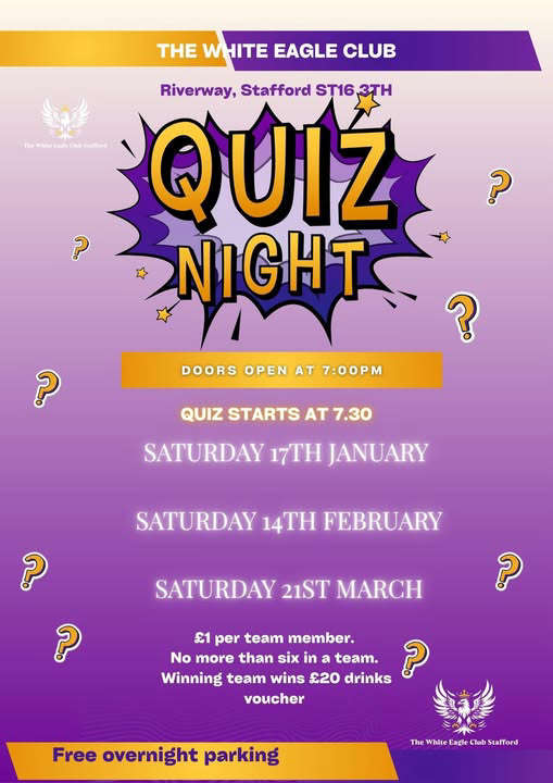 Quiz Night at The White Eagle ClubFebruary 14th 2026