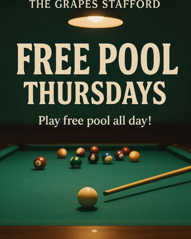Free pool Thursday's at The GrapesFebruary 26th 2026